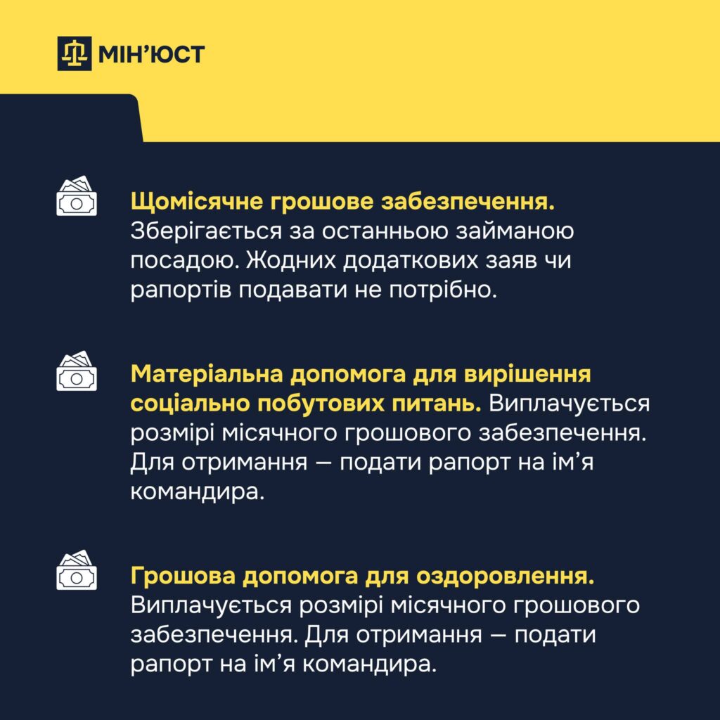 Військовослужбовці, які отримали поранення, контузію або травму, мають право на грошову допомогу від держави. Зокрема, передбачено як щомісячні виплати, так і одноразові компенсації, залежно від обставин.