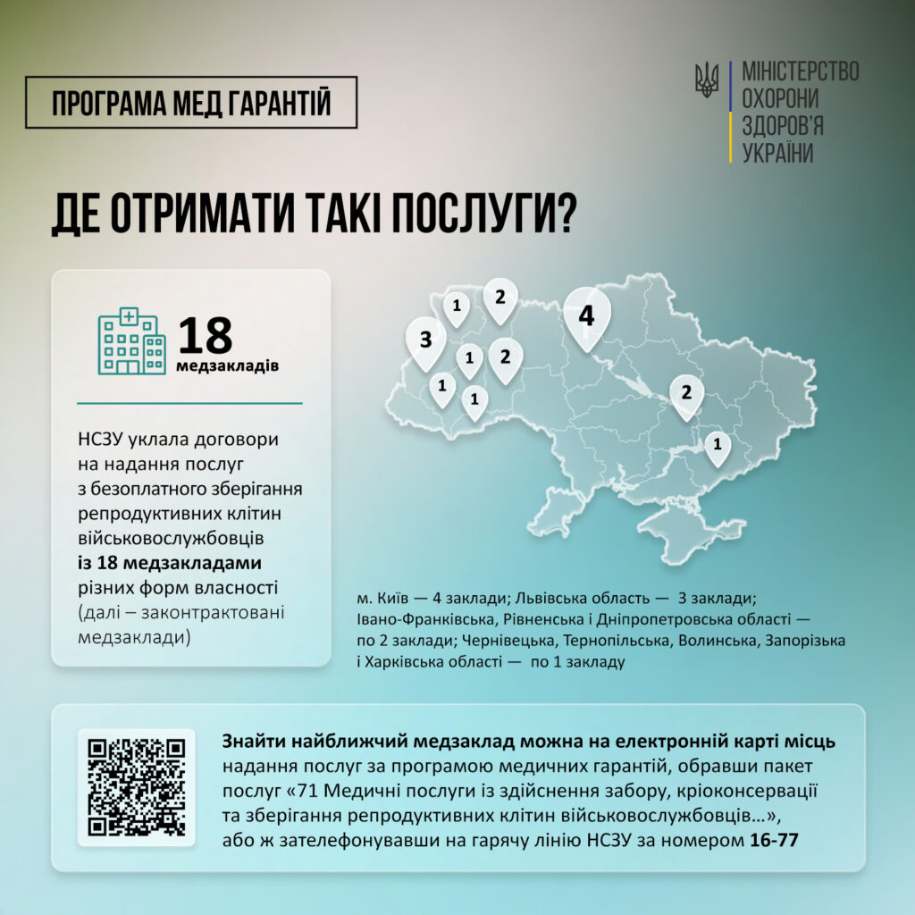 Військові (жінки і чоловіки) можуть безоплатно зберегти свої репродуктивні клітини. Така державна програма захищає репродуктивні права наших захисників і захисниць і дозволяє їм стати татом чи мамою у майбутньому, попри всі ризики, які несе війна.