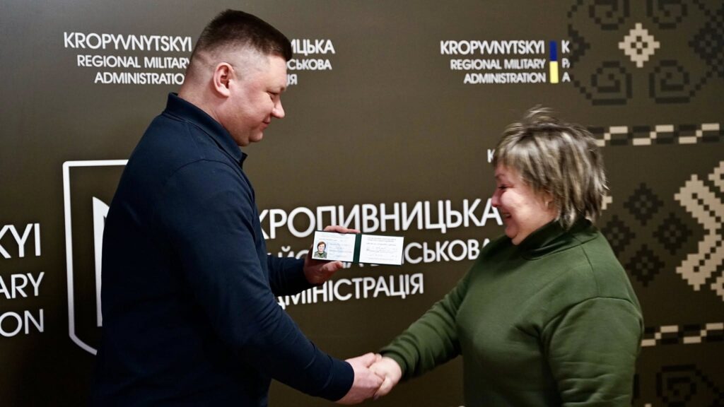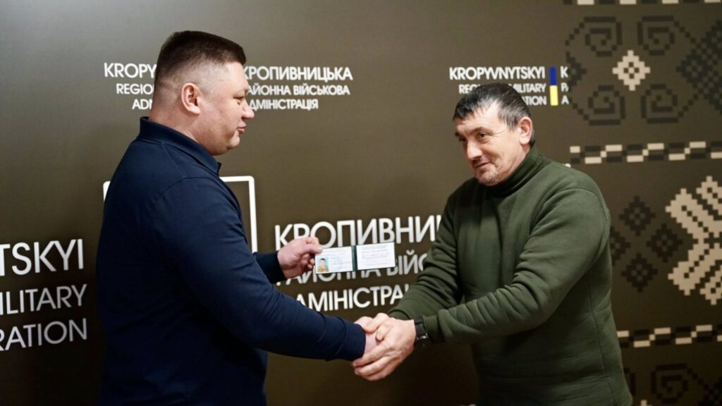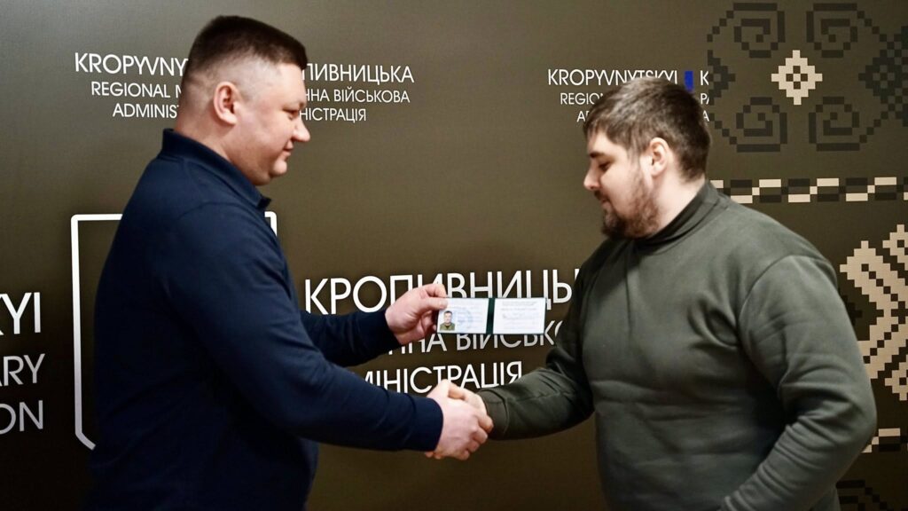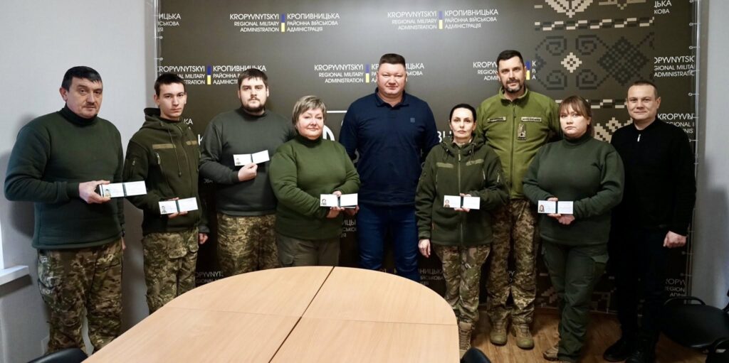 Начальник Кропивницької районної військової адміністрації, як керівник територіальної оборони району, Vitaliy Pastushenko вручив посвідчення членам добровольчого формування Знам’янської міської територіальної громади №1. Документи отримали громадяни, які добровільно долучилися до виконання завдань із забезпечення безпеки та оборони Знамʼянської громади.