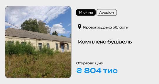 Комплекс будівель у Кіровоградській області на приватизаційному аукціоні.